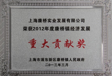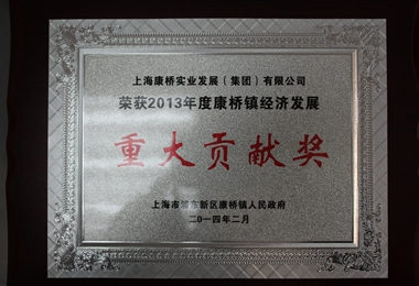 • 2013年度康橋鎮(zhèn)經(jīng)濟發(fā)展“重大貢獻獎”