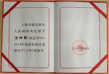• 公司董事長湯柳鶄同志榮獲2010-2014年度浦東新區(qū)先進生產(chǎn)(工作)者稱號
