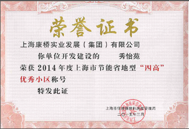 • 公司秀怡苑榮獲2014年度上海市節(jié)能省地型“四高”優(yōu)秀小區(qū)稱號