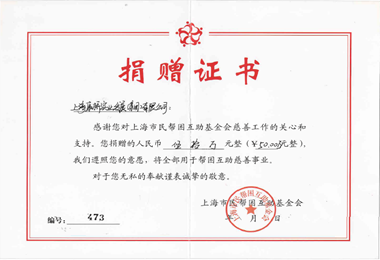 • 榮獲慈善公益聯(lián)合捐組委會頒發(fā)的捐贈證書