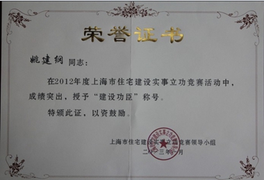 • 公司姚建綱榮獲2012年度上海市住宅建設(shè)實事立功競賽“建設(shè)功臣”