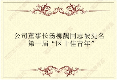 • 公司董事長湯柳鶄同志被提名第一屆“區(qū)十佳青年”