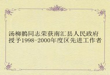 • 公司董事長湯柳鶄同志榮獲南匯縣人民政府授予1998-2000年度區(qū)先進工作者